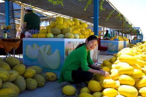 走在瓜州的大街小巷,你会看到许多热情的摊主,他们拿着大刀,现场切瓜。只要你愿意,他们就会免费给你切一块尝尝。这里的西瓜汁水丰富,甜度高,一口咬下去,满口生津。