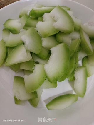 2. 切片:将毛瓜洗净,切成薄片,厚度大约在0.5厘米左右。
